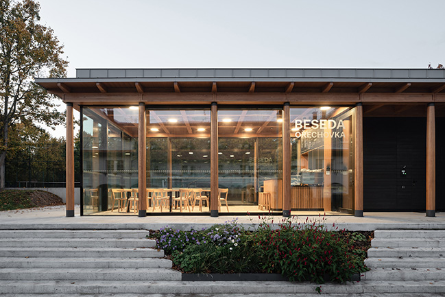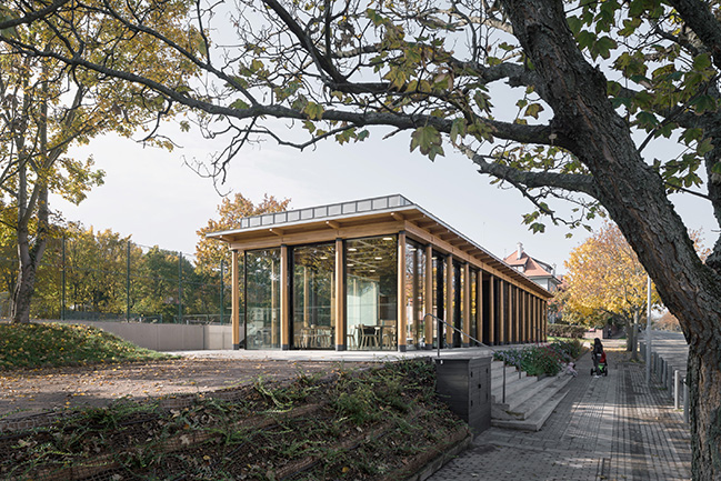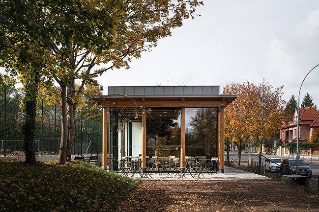 04 / 11 / 2025 The new tennis club pavilion on Macharovo square in the heart of Prague's Ořechovka district is designed as a lightweight wooden structure on columns that evokes spa gazebos...