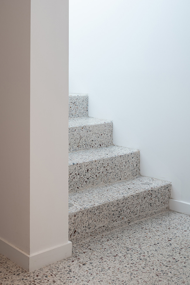 Wide stairs for seating are placed on the axis of Machar Square, facing the liveliest part of the street. To the east, the terrain is raised, expanding the outdoor café area that has become very popular for pétanque.