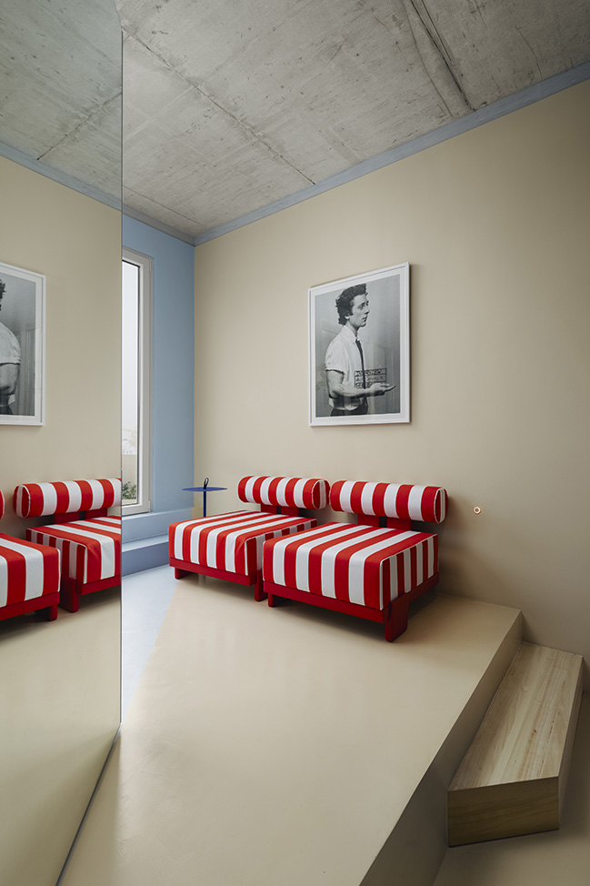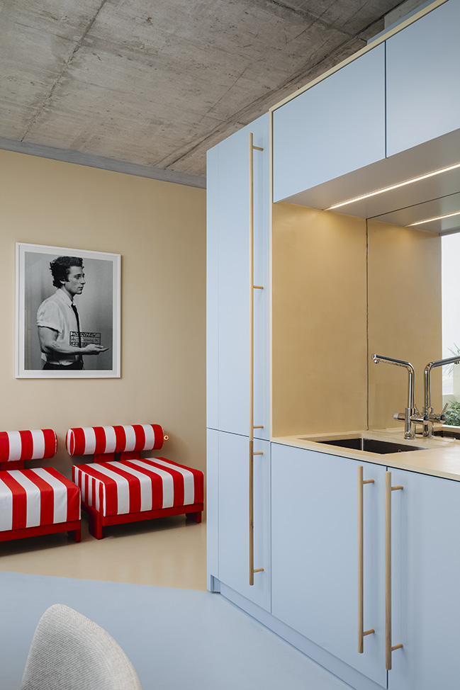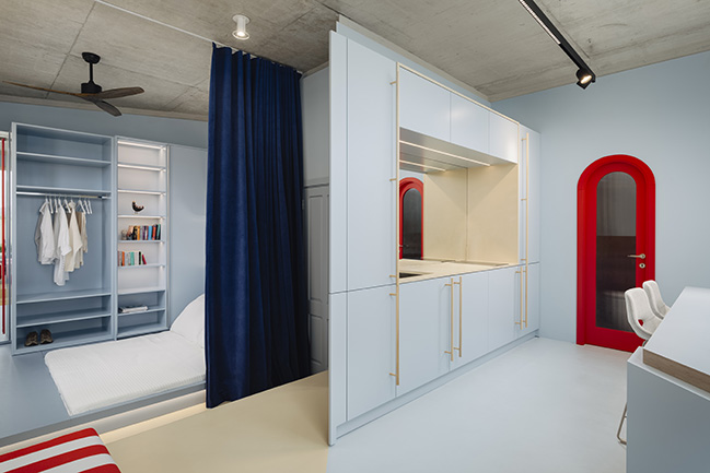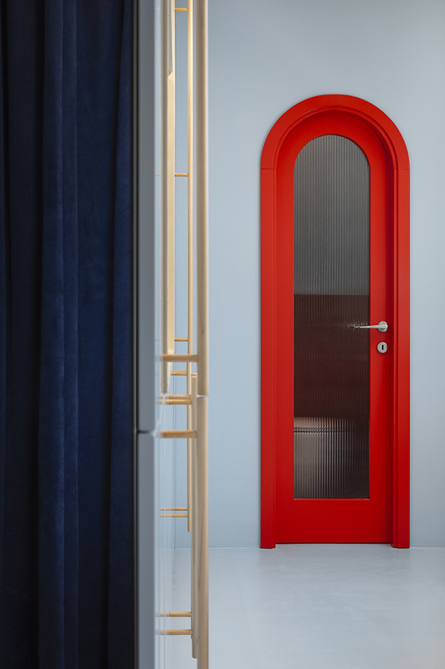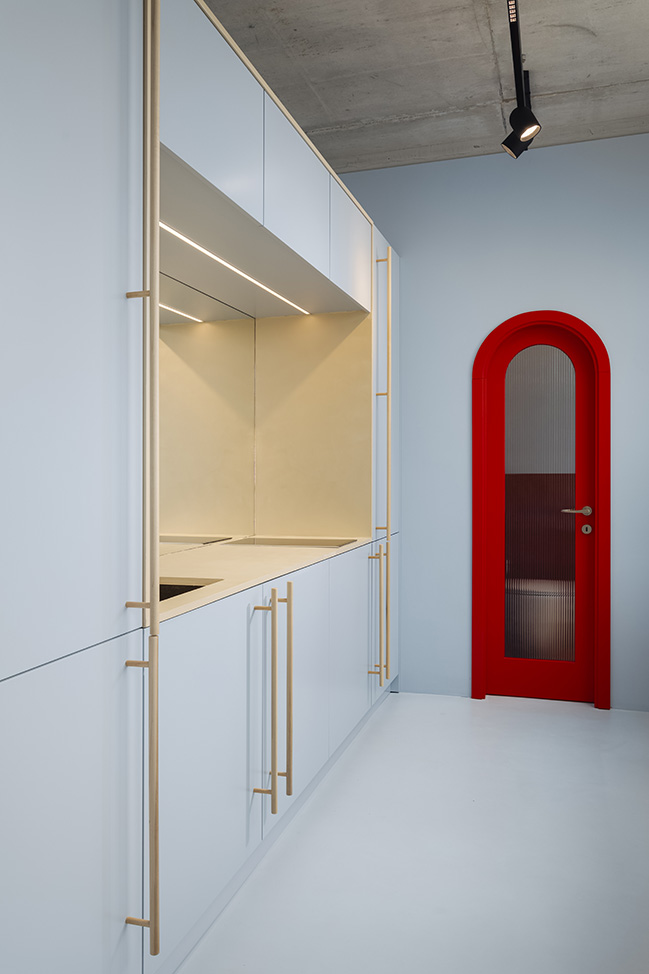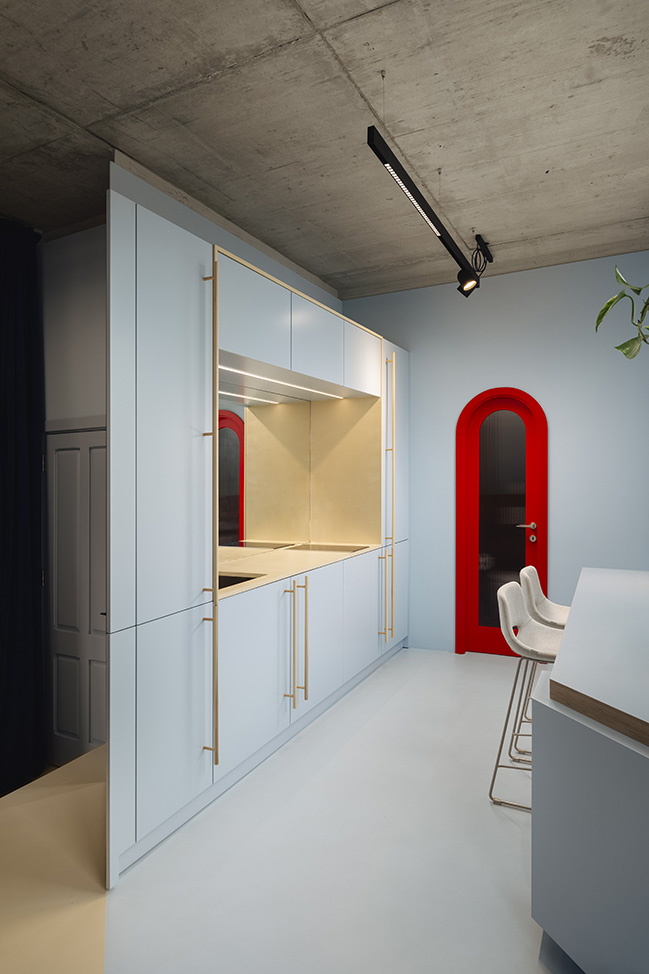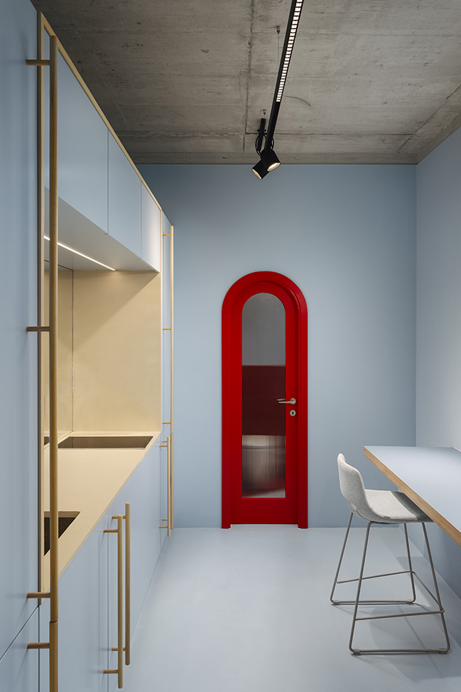 Externally, The Blue Room remains in quiet dialogue with its historic surroundings, while internally, it asserts a dynamic reinterpretation of tradition. Through a balance of minimalist efficiency and expressive gestures, the design bridges past and present, creating a compact space that feels both timeless and forward-thinking.