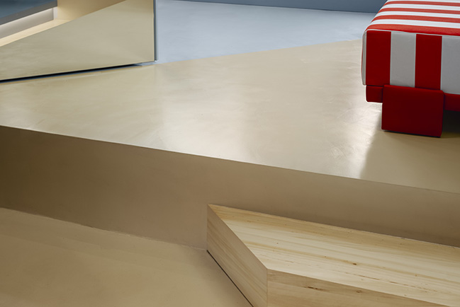 Custom joinery plays a central role in the spatial strategy. An angular kitchen configuration aligns with a dynamic diagonal floor pattern, optimising circulation and reinforcing the project’s geometric clarity. A mirrored backsplash dissolves boundaries and multiplies light, while concealed storage transforms underutilised corners into efficient, elegant solutions. The sleeping area is seamlessly integrated into the joinery, maintaining a cohesive and continuous aesthetic.