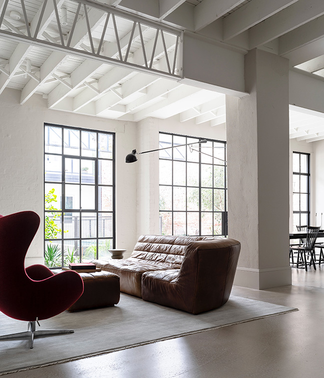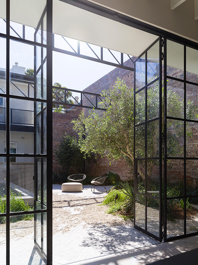 ANNA CARIN DESIGN STUDIO linked the two separate buildings, the small corner shop built in 1909 and the bigger warehouse finished in 1922 which served as a bakery - complete with numerous ovens and chimney stacks - to create an unexpected inner city oasis with an emphasis on light and nature.