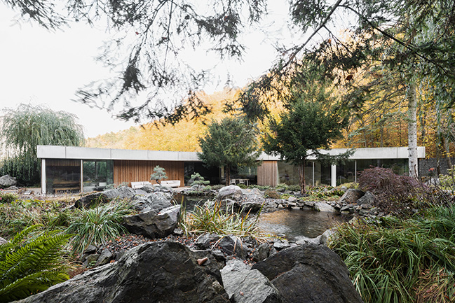 This approximately 4,000 sq. ft. residence is composed of three main volumes connected by curved passageways. Designed by MUUK Architecture, the house integrates naturally into the terrain, evoking a former farmstead…